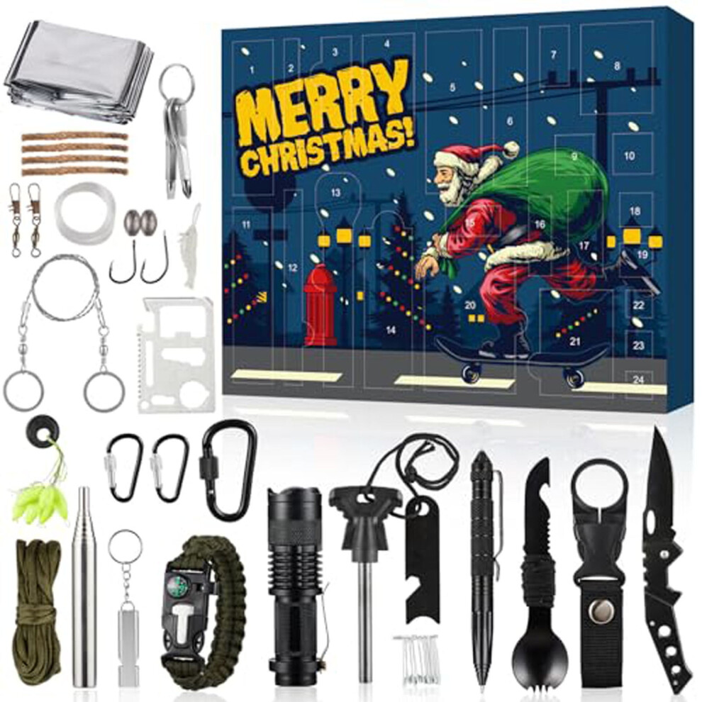 Bosiyrggrl Advent Calendar 2025-24 Days Christmas Countdown Survival Tool Kit for Camping, Gifts for Adult, Teen Boy
