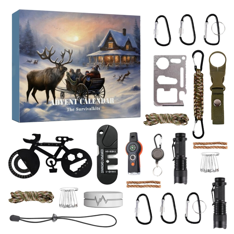 24 Days Christmas Advent Calendar Outdoor Survival Tool Kit, Advent Gift Box, Surprise Gift Box, Survival Gear Set