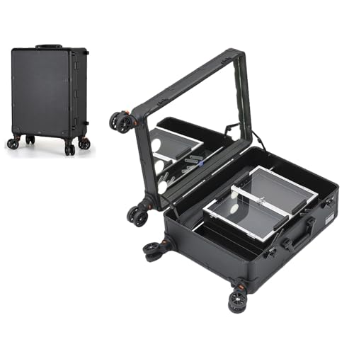 Makeup Trolley Aluminum e PVC Cosmetic Case,Makeup Tool Box with Wheels,Rolling Beauty Suitcase Bag,Large Capacity Make-up Trolley Luggage