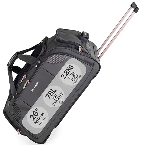 Pierre Cardin Lightweight Roller Holdall with Wheels - Durable Medium Duffle Bag Versatile Travel Holdall, Tool, Ice Skate and Cricket Bag | 78L Wheeled Duffel CL769 (Medium Grey 26")