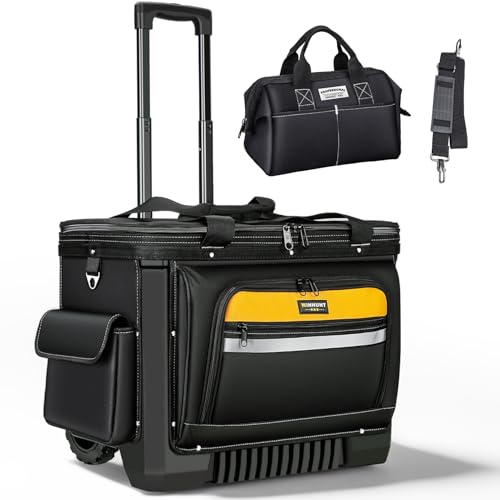 WINHUNT 20'' Rolling Tool Bag with Wheels,Heavy Duty Tool Trolley Wide Mouth Telescoping Handle Storage Organizer with Small Tool Bag, Black