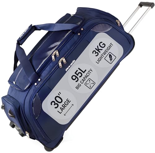 Pierre Cardin Lightweight Roller Holdall with Wheels - Durable Large Navy Duffle Bag On Wheels, Travel Holdall, Gym, Cricket, Ice Skate and Tool Bag | Wheeled Duffel CL769 (Large Navy 30")