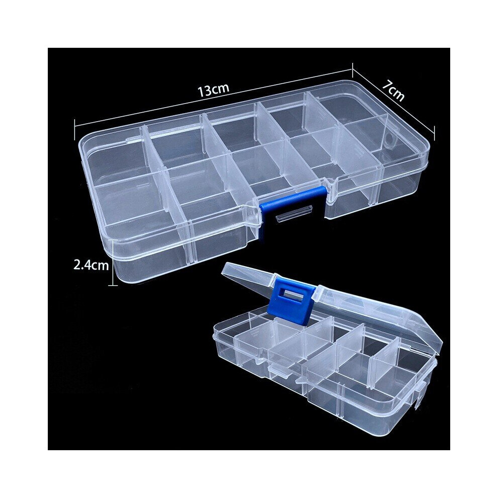 10 Grid Plastic Storage Boxes Slots Adjustable Packaging Transparent Tool Case Pill Nail Accessories Organizer Jewelry Box