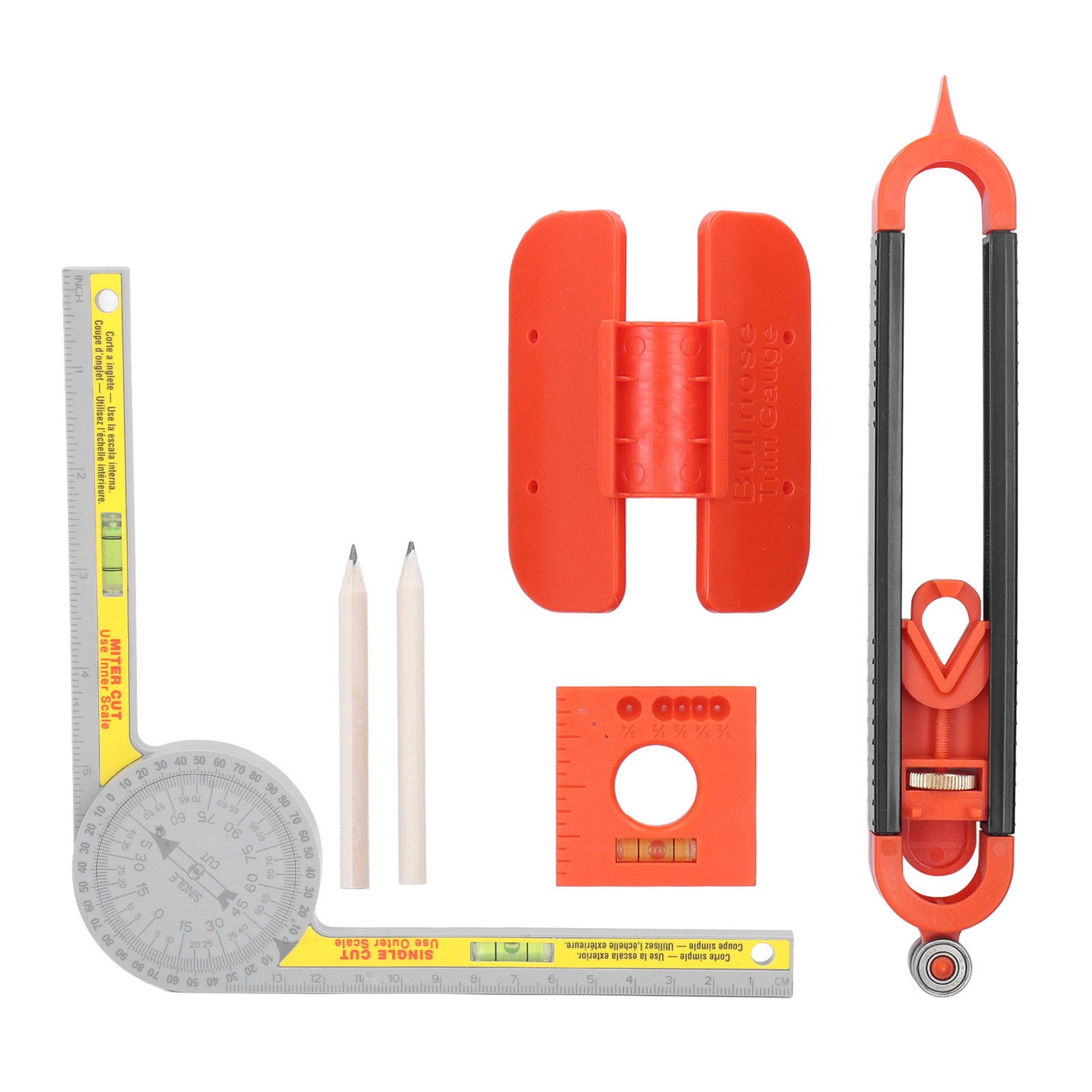 6Pcs Scribing Tool Protractor Angle Scriber Set Kit with Bubble Level Orange Gray for Woodworking