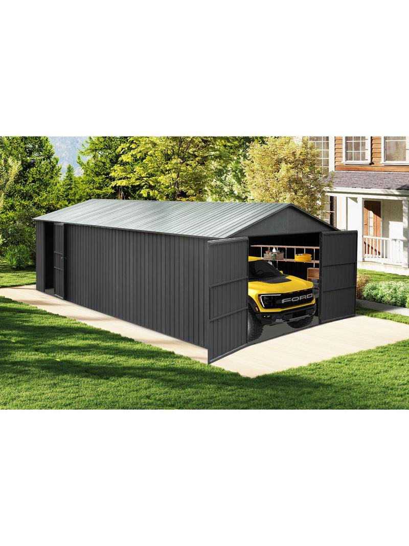 Panana Zinc Steel Metal Garden Sheds Garden Storage Outdoor Metal House Utility Tool Storage (4.7x8.86ft)