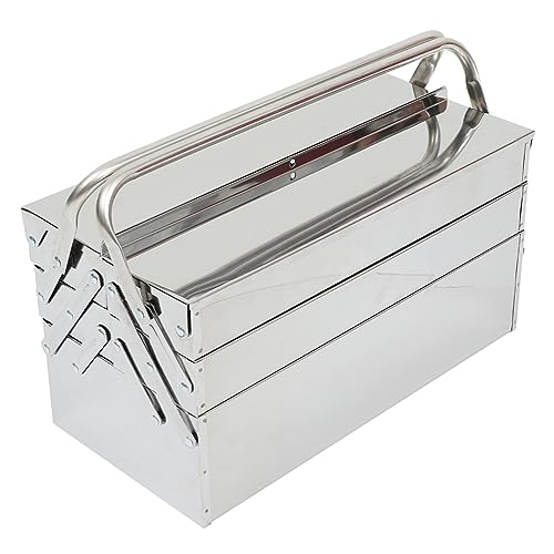 Tofficu Household Tools Handy Box Foldable Stainless Steel Storage Case with Three Layers Portable Practical Toolbox for Repair Tools Organizing and Carrying