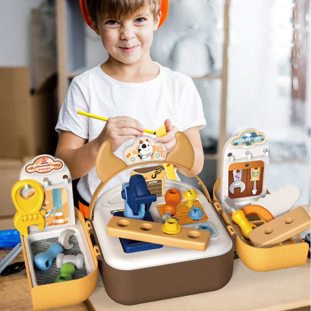 Kids Tool Set,Magic Montessori Play Toolbox,Pretend Play Tools Kit,Magic Montessori Play Toolbox Bear with Electric Drill Screw Tool Set,Creative Mosaic Puzzle Toy for Kids Ages 3-12 Years Old (Bear)