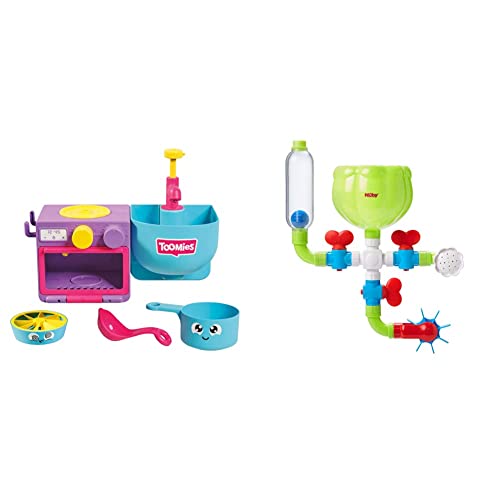 Toomies E73264 Bubble & Bake Bathtime, Baby, Bath Toddlers, Kitchen Themed Bubble Making Toy, 2 in 1 Set & Nuby Wacky Water Works Pipes Bath Toy for 3 Year Olds