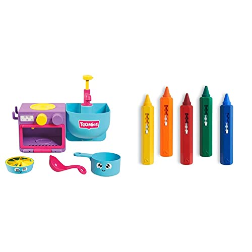 Toomies E73264 Bubble & Bake Bathtime, Baby, Bath Toddlers, Kitchen Themed Bubble Making Toy, 2 in 1 Set & Munchkin Bath Time Toy Crayons - Multi-Coloured, Pack of 5