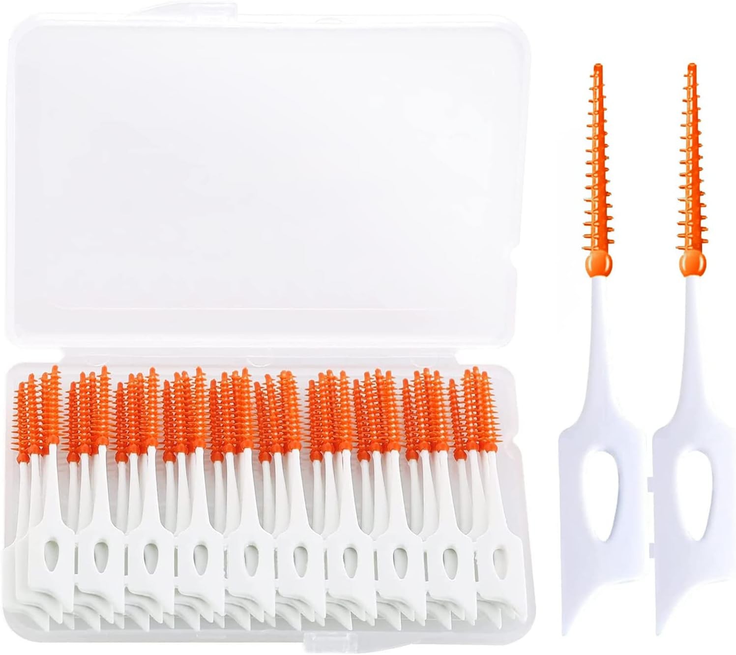 URAQT 220pcs Dual-Use Interdental Brushes, Silicone Dental Floss Sticks with Storage Case, Efficient Clean Between Teeth Tooth Floss Picks, Portable Tooth Gap Brush for Braces Oral Cleaning (Orange)