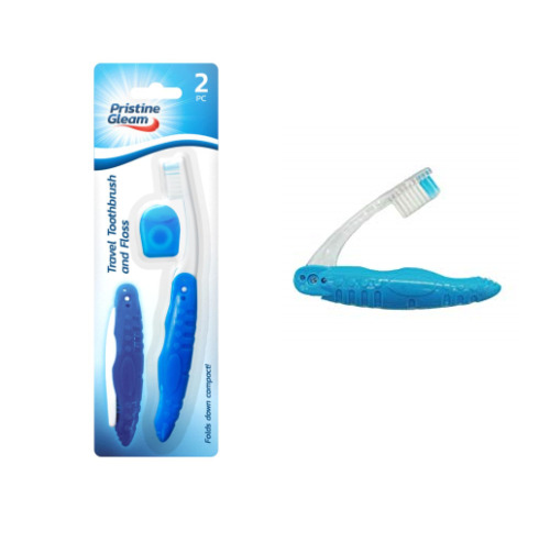 2 Pcs PristineGleam Travel Toothbrush Tooth Brush & Floss Travelling
