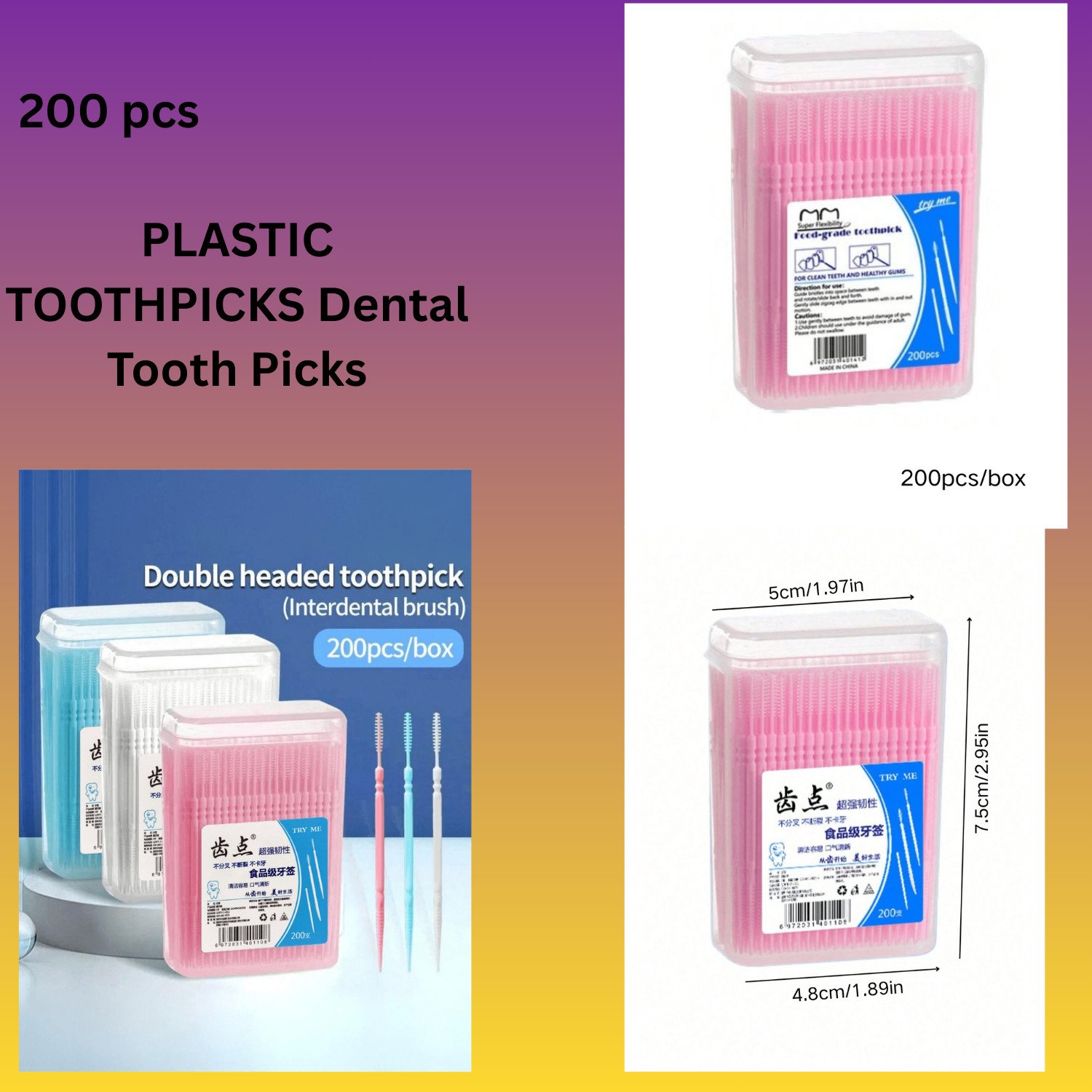 200 PCS PACK PLASTIC TOOTHPICKS Dental Tooth Picks Oral Care Hygiene Floss Brush