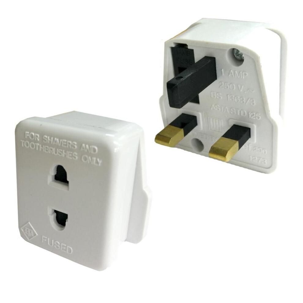 Shaver and Toothbrush Plug Adaptor Shaving Adapter Epilators Bathroom To 2 Pin 3 1A Fuse - By Guilty Gadgets
