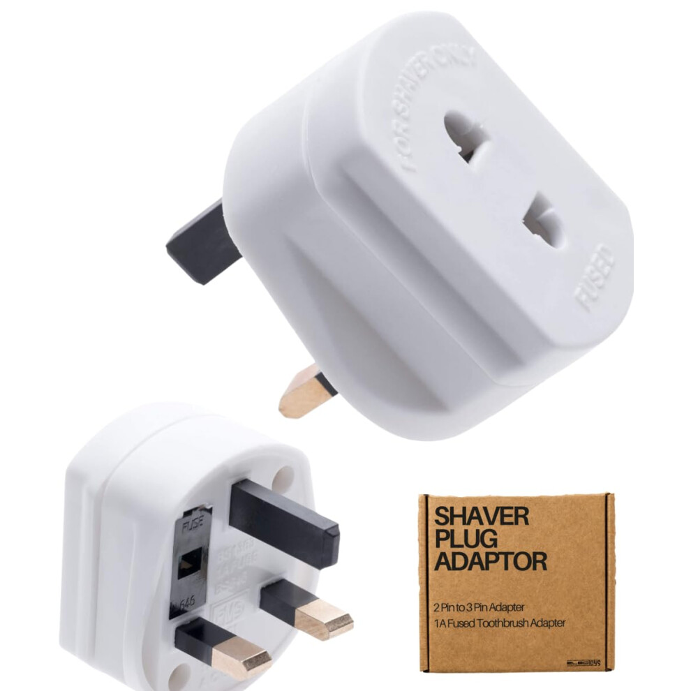 Toothbrush & Shaver Plug Adapter UK: 2-Pin to 3-Pin, Travel, Lightweight, Compat