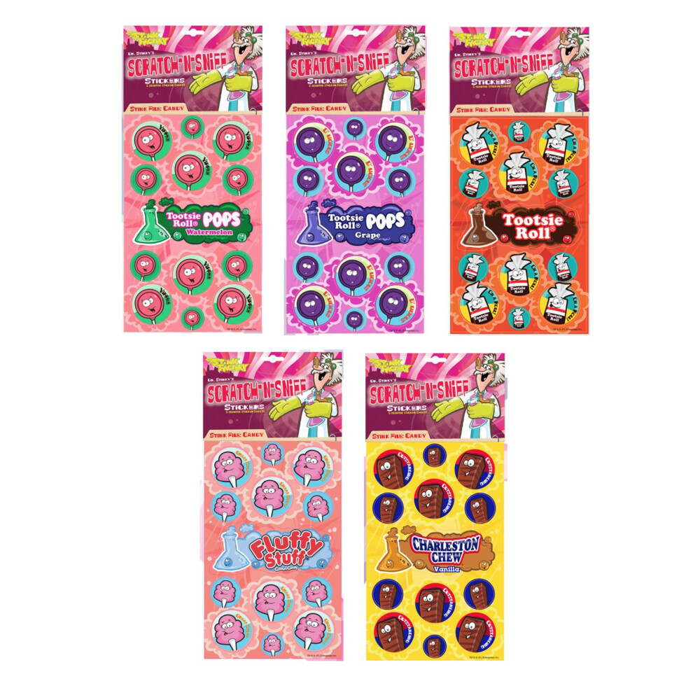 Just For Laughs Dr. Stinky's Scratch N Sniff Stickers 5-Pack- Tootsie Roll Pops Watermelon Tootsie Roll Pops Grape Tootsie Roll Fluffy Stuff Cotton