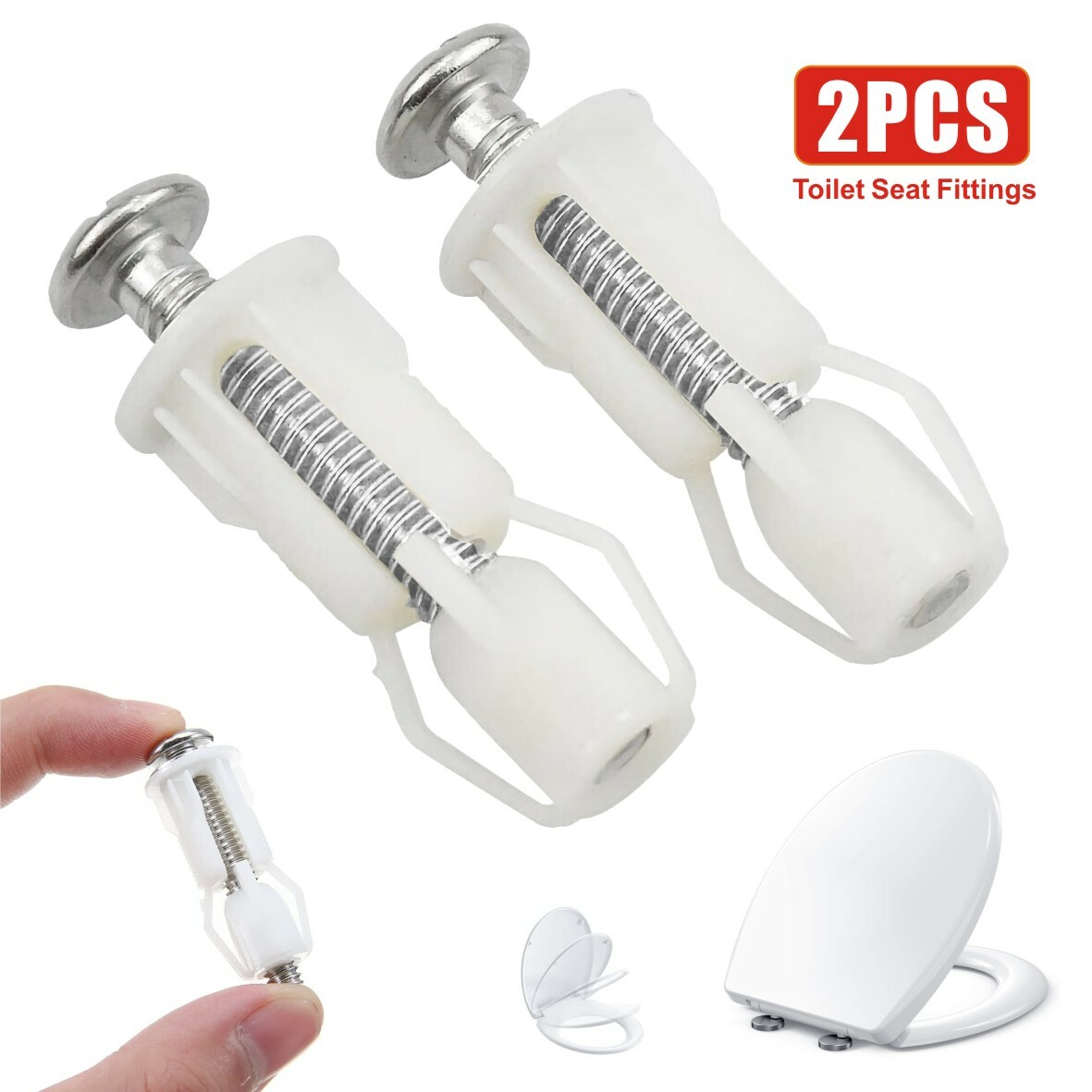 2pcs Toilet Seat Fittings and Fixtures Toilet Lid Screws Stainless Steel Top Fixing Hinges Screws Expanding Nylon Nuts White Fixing Bolt for Toilet Covers Blind Hole Fitting WC Replacement Kit