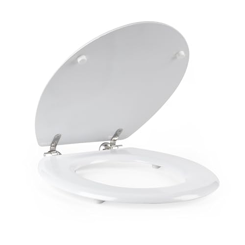 Beldray Toilet Seat - O Shaped White Tongue & Groove Wooden Cover, 18 Inch 36 x 42.8 cm, Fits Most Standard Sized Toilets, Stainless Steel Hinges, Simple Fitting, Quick Release For Easy Cleaning