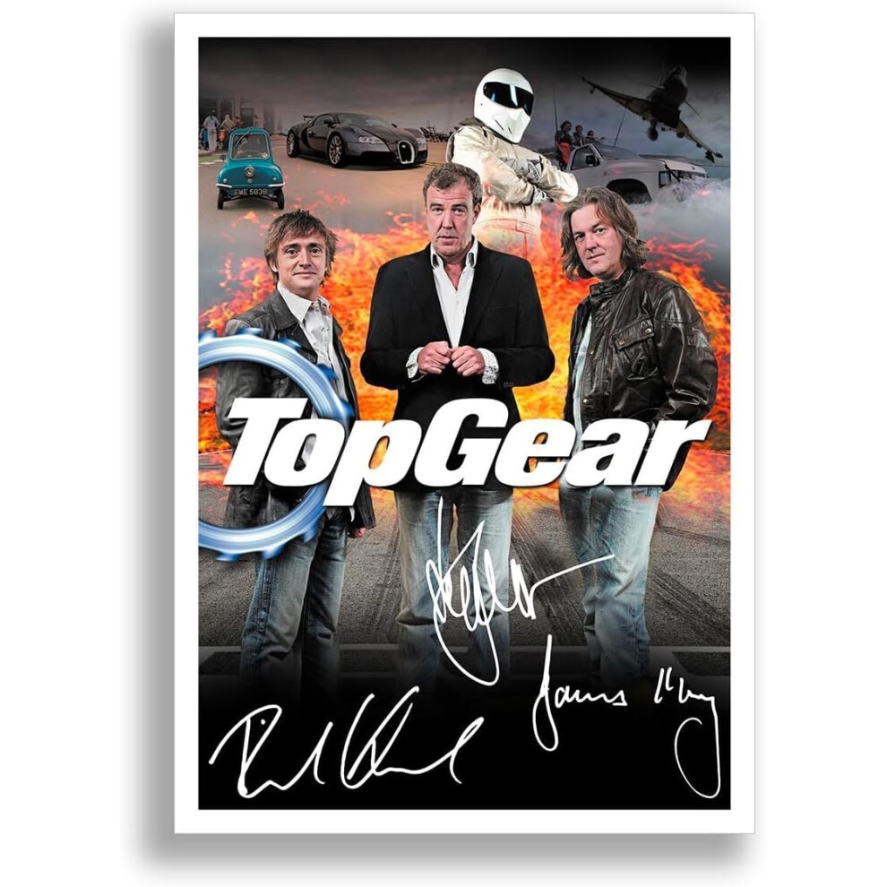 Top Gear Cast Signed Autograph A4 Poster Photo BBC TV Show Series Season Framed Memorabilia Gift Jeremy Clarkson Richard Hammond James May (A4 BLACK