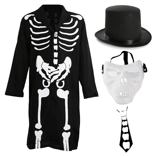 Adults Fancy Skeleton Costume - Small - Top Hat, Mask, Jacket and Tie With Skeleton Print - Perfect for Halloween Events