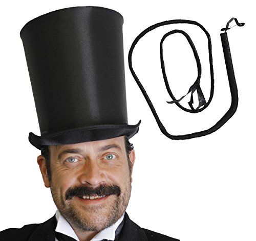 ADULTS LION TAMER FACNY DRESS COSTUME - CIRCUS RING MASTER FANCY DRESS COSTUME BELL TOP HAT AND BULLWHIP - ONE SIZE -