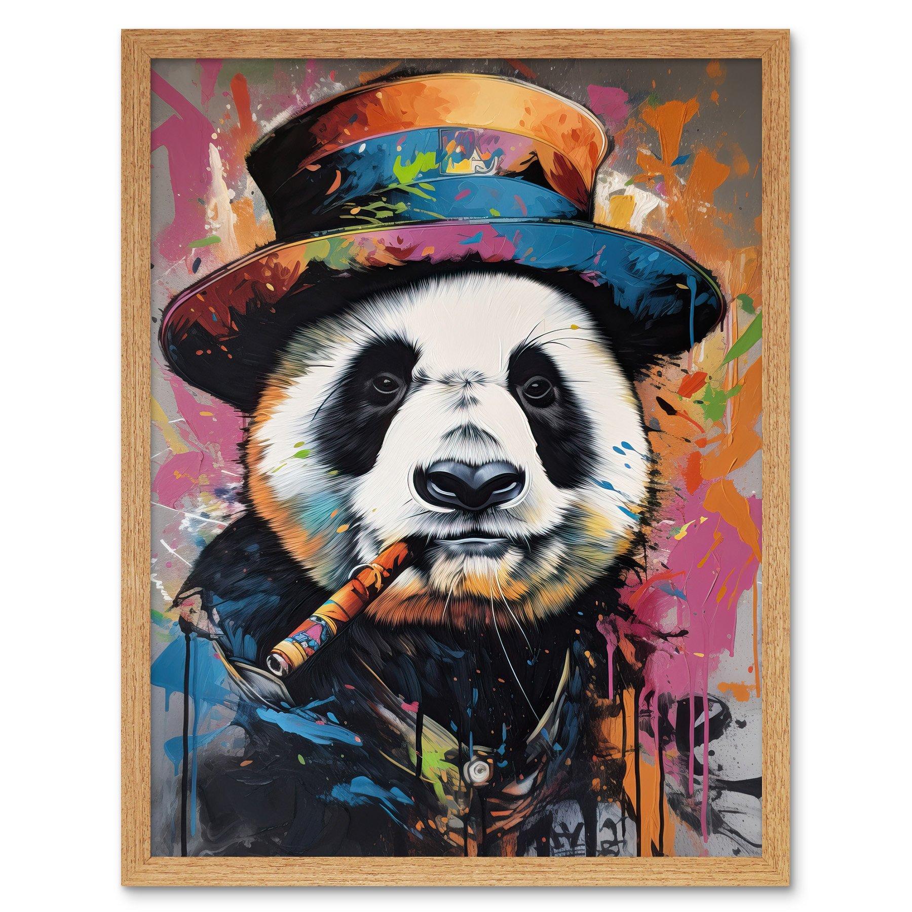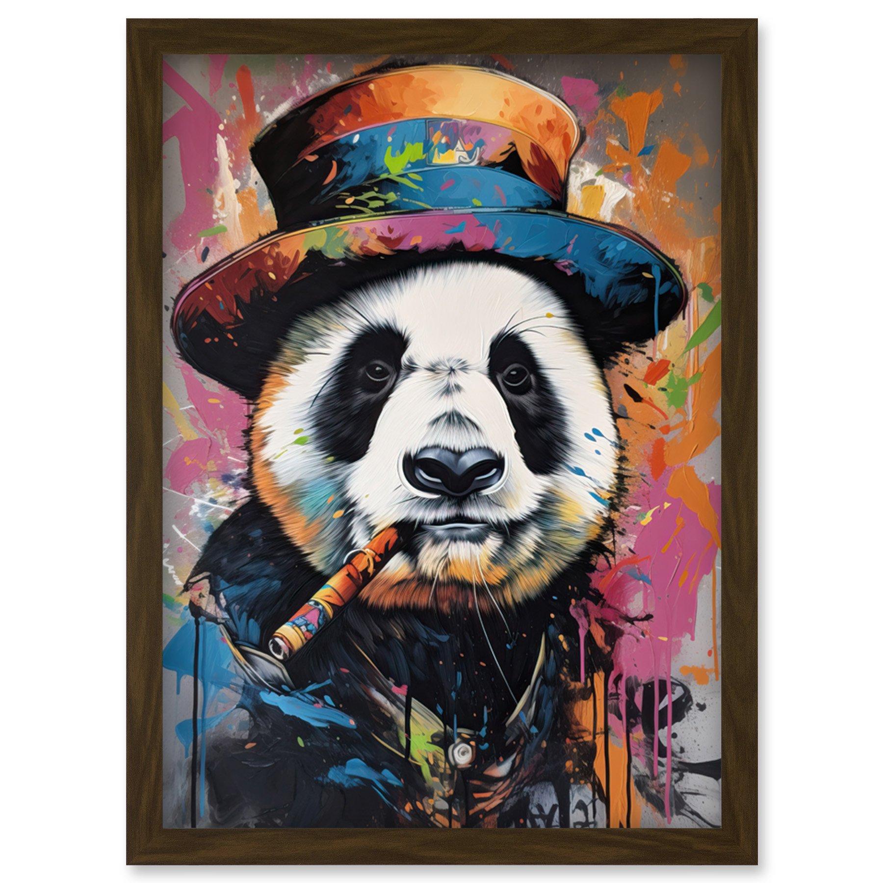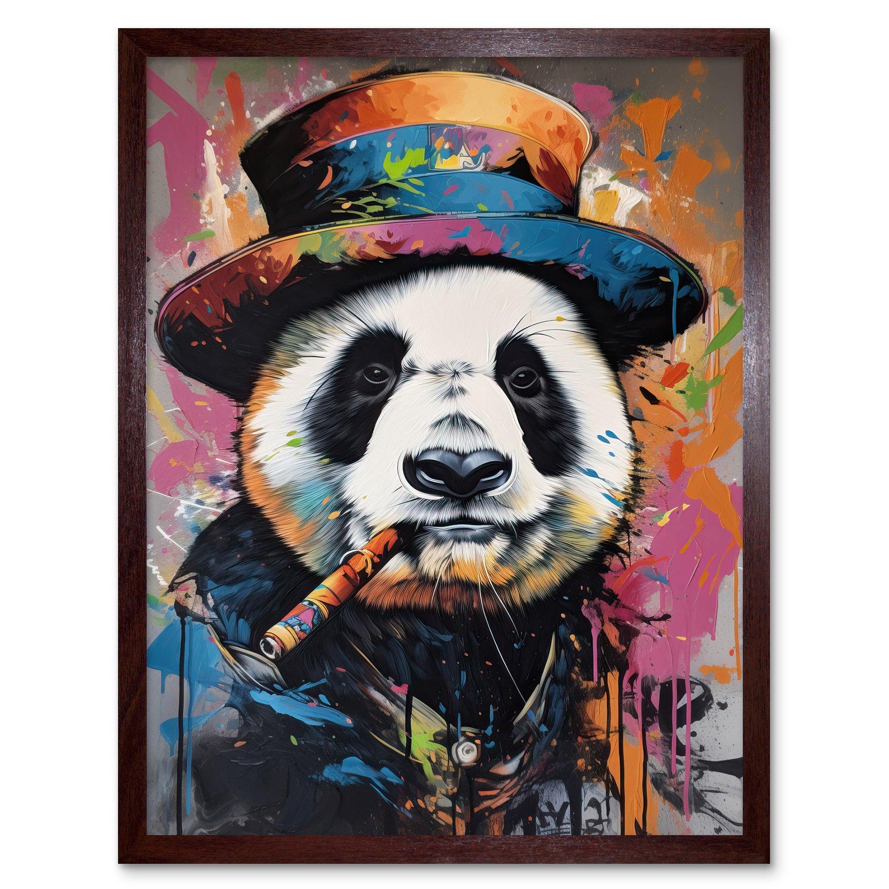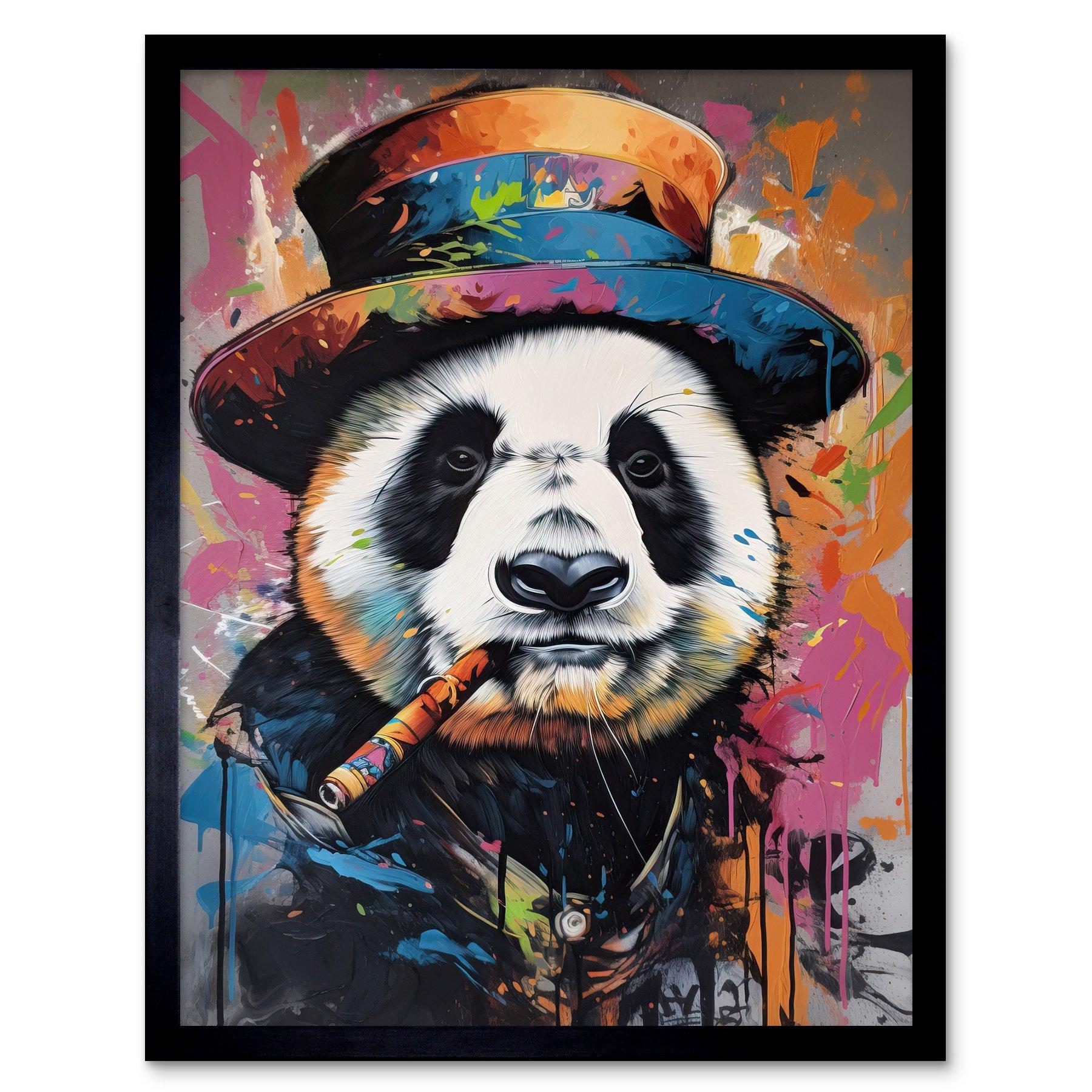 Panda Bear with a Suit Low Top Hat and a Cigar Artwork Framed Wall Art Print A4