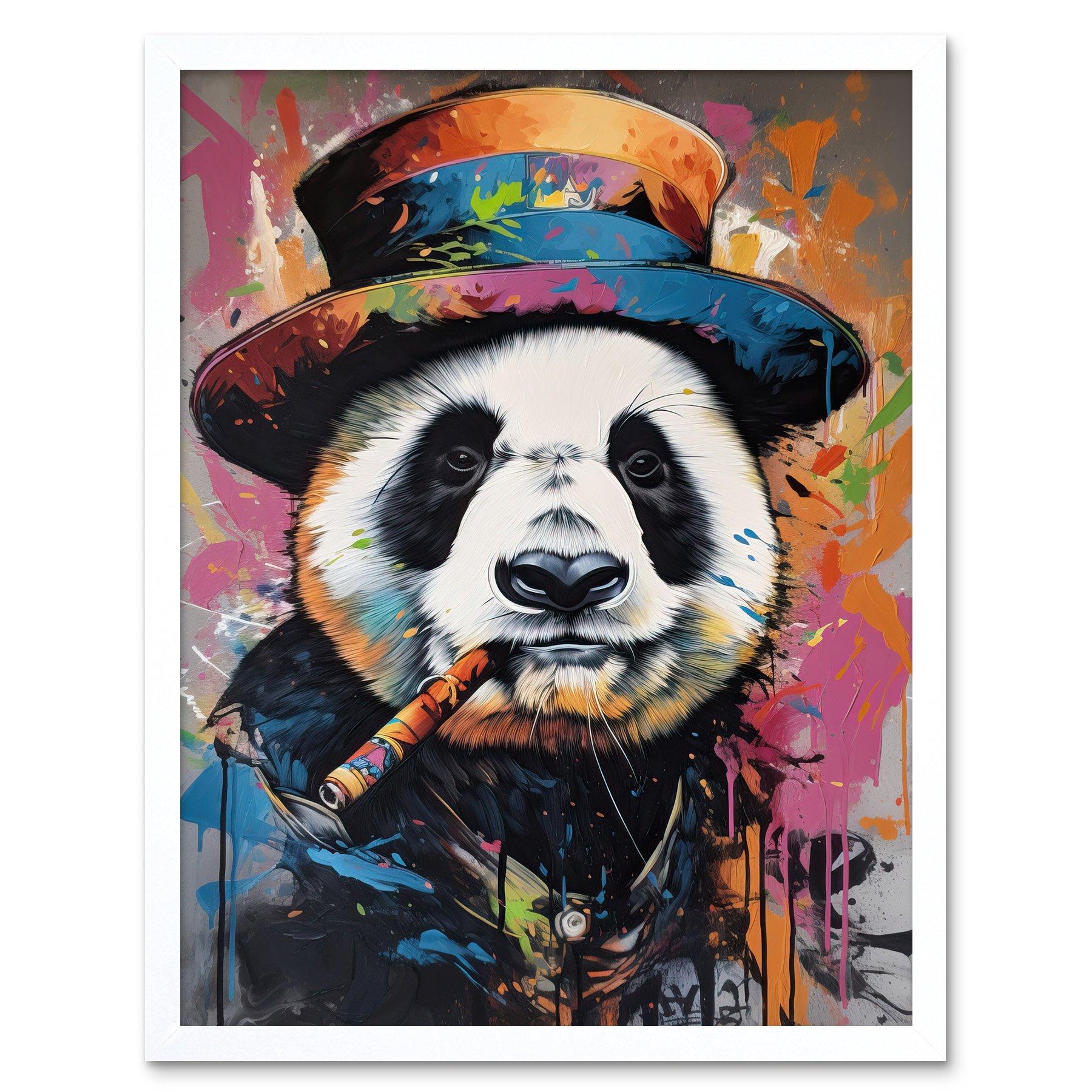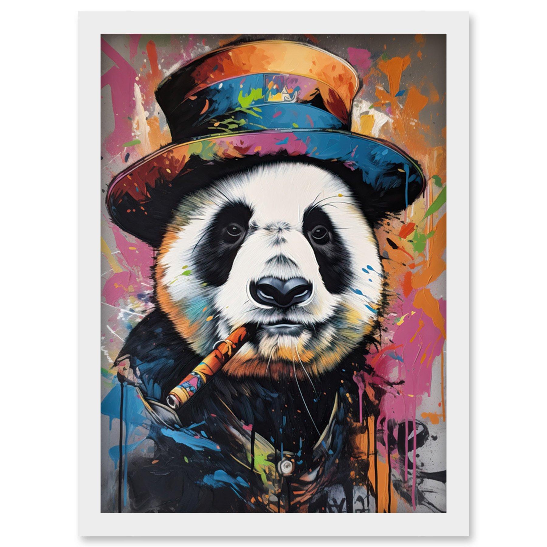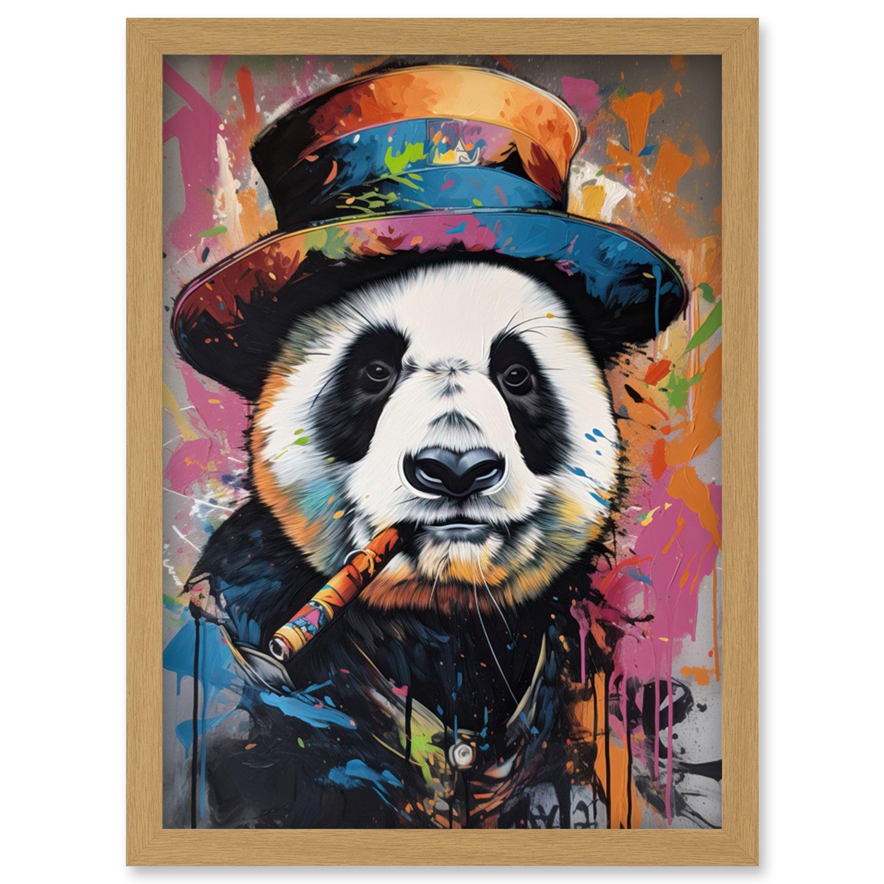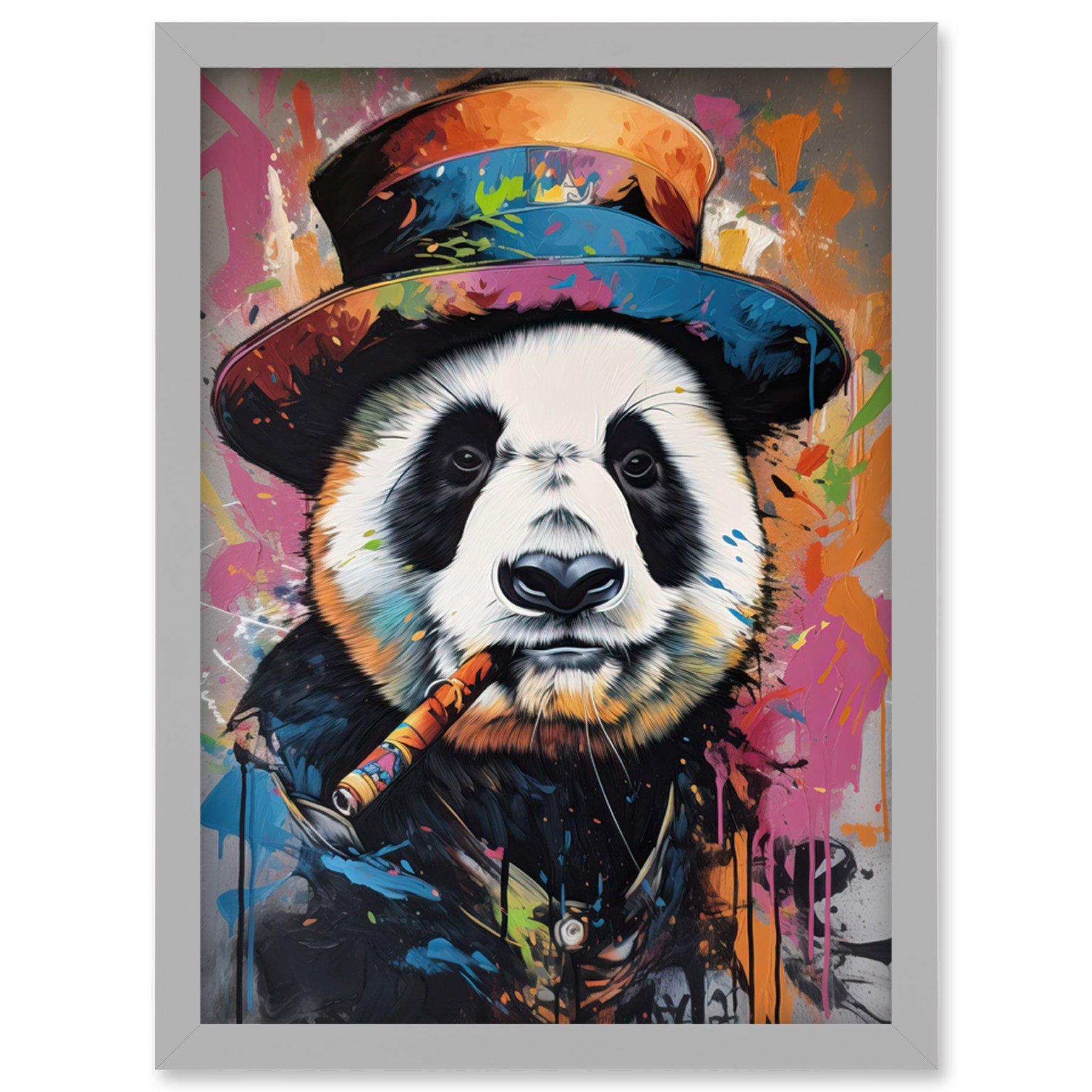 Panda Bear with a Suit Low Top Hat and a Cigar Artwork Framed Wall Art Print A4