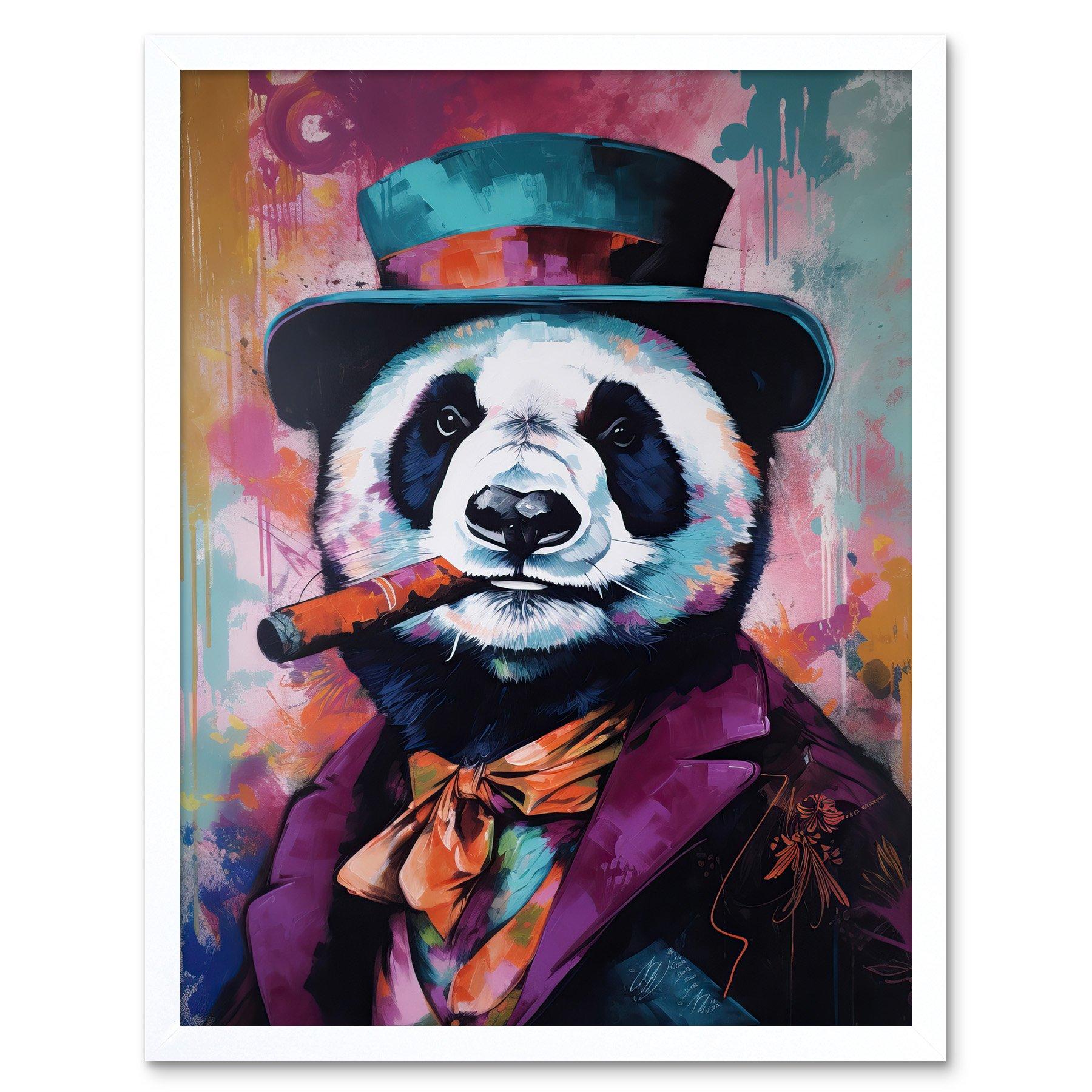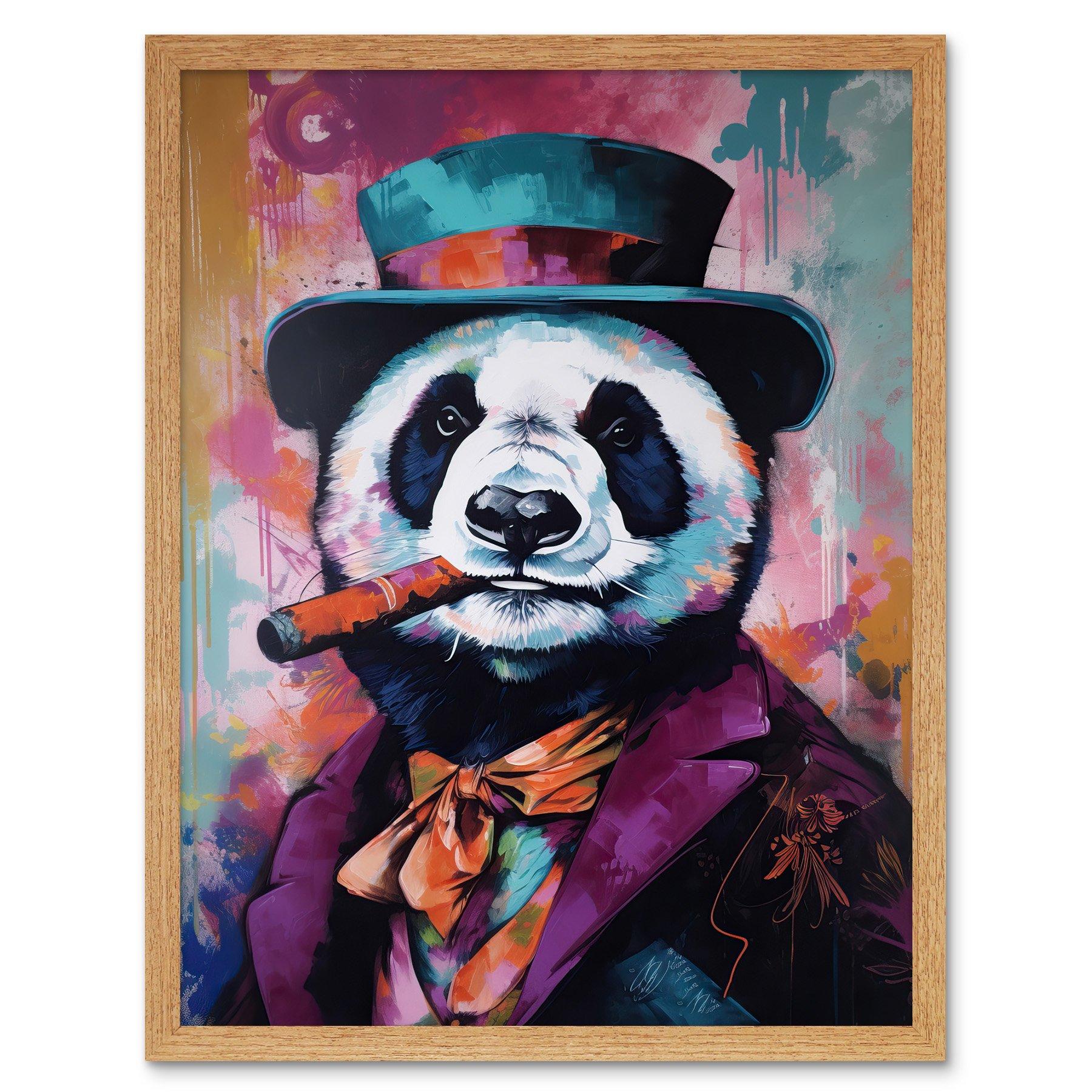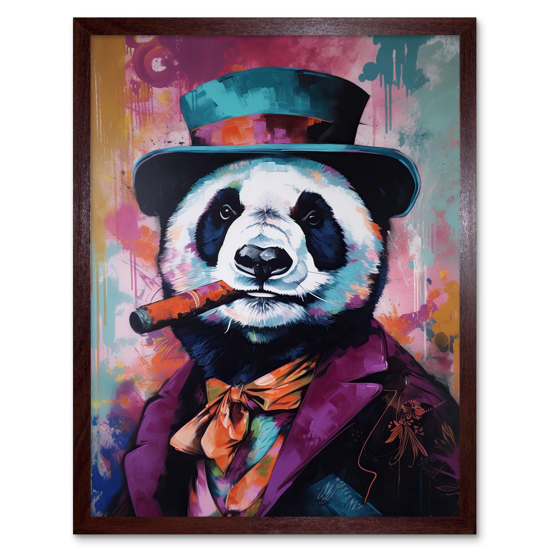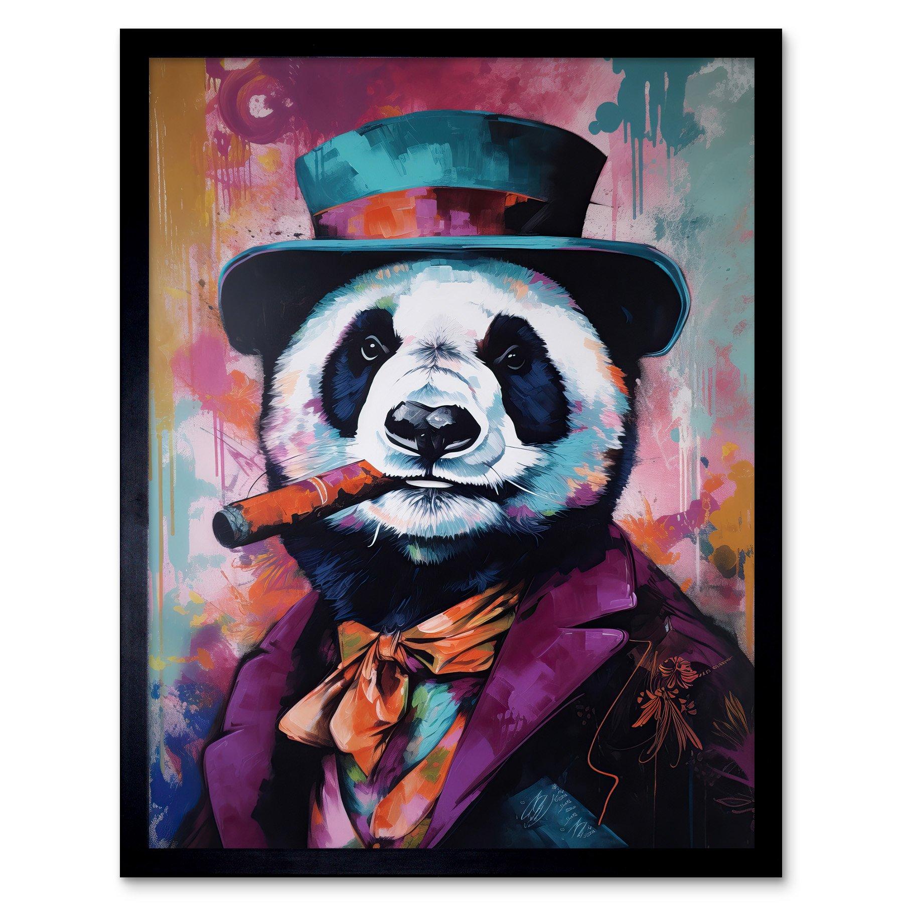 Panda Portrait with Purple Suit Top Hat and Cigar Artwork Framed Wall Art Print A4