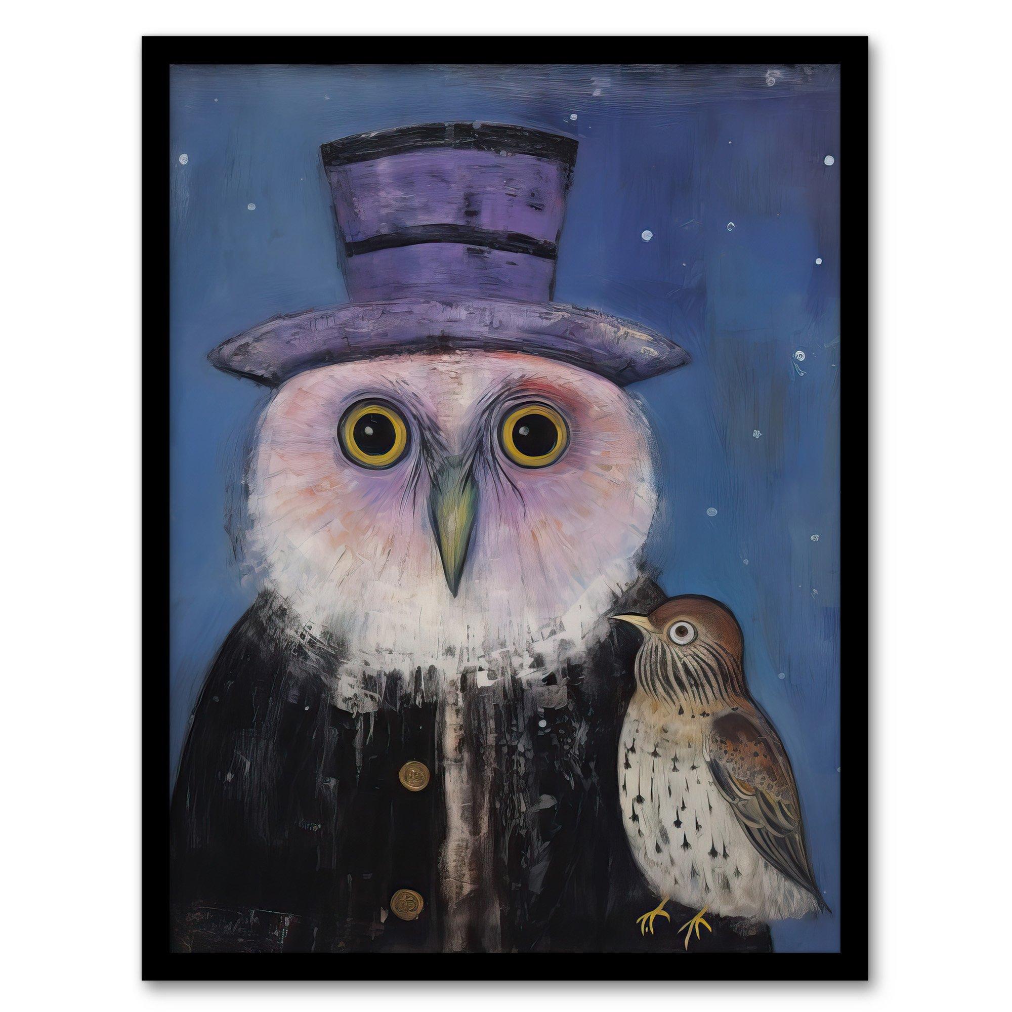 Top Hat And Tailfeathers Uncanny Friends Oil Painting Sparrow And Owl Art Print Framed Poster Wall Decor