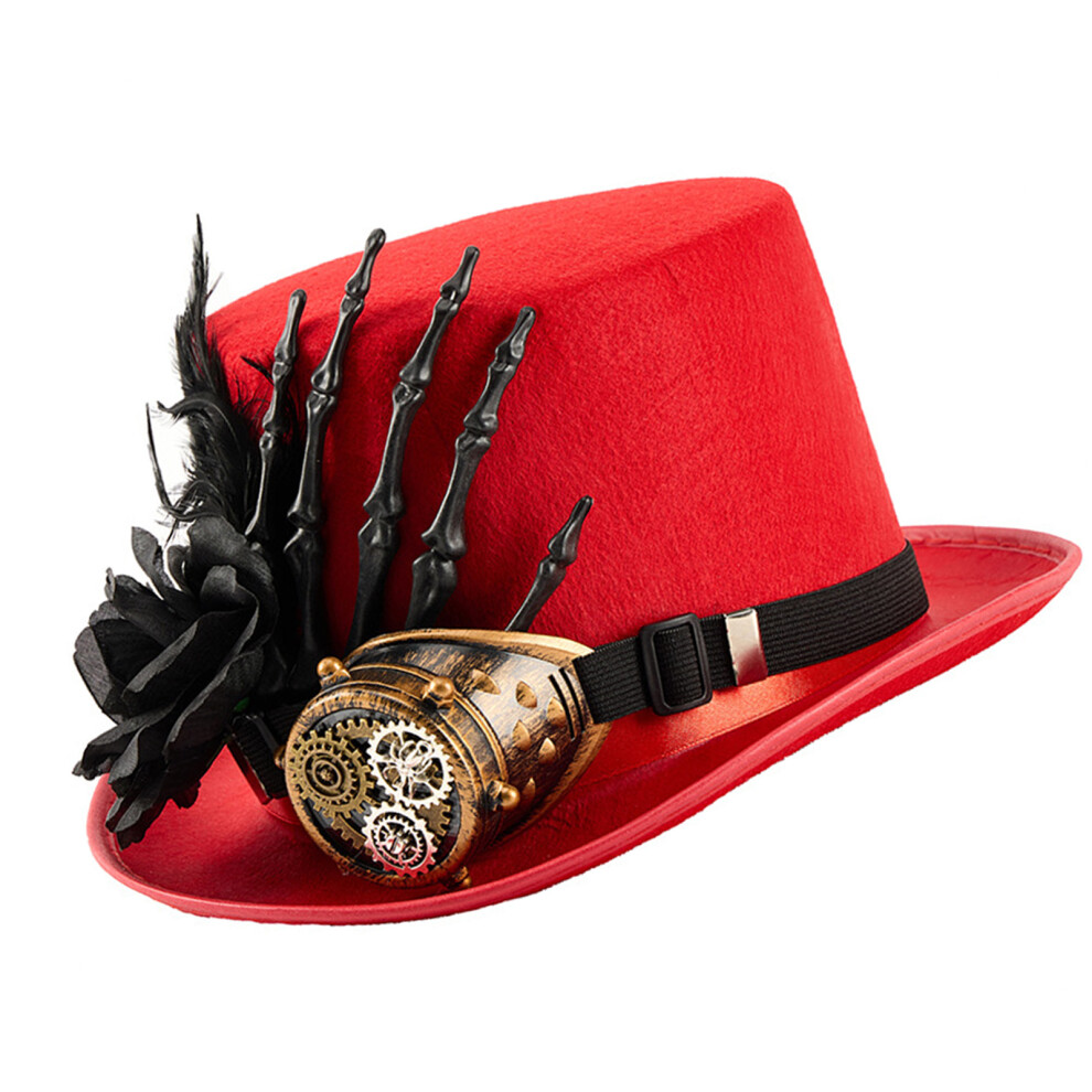 Gothic Tall Hat Carnivals Party Top Hat With Flower And-Red