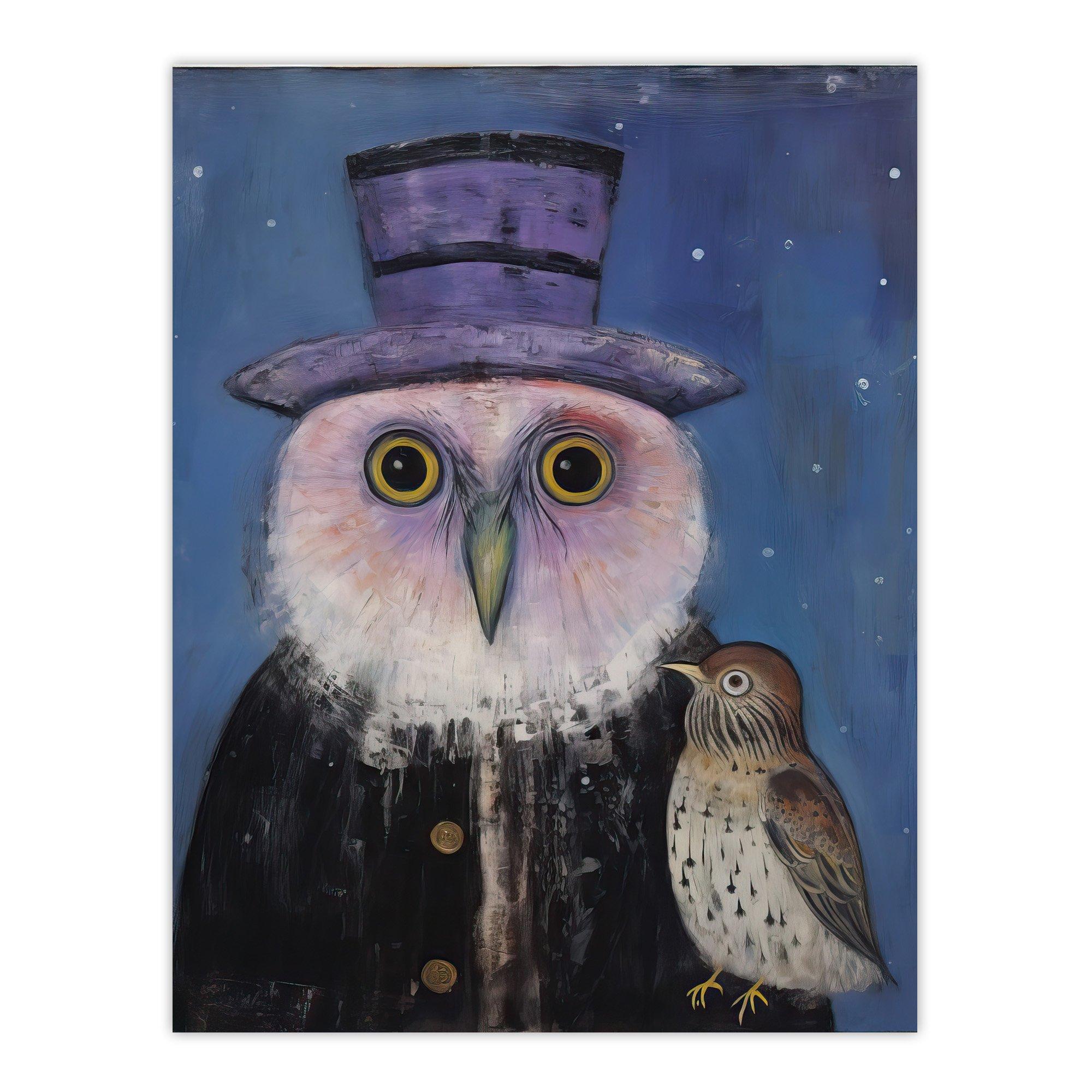 Top Hat And Tailfeathers Uncanny Friends Oil Painting Sparrow And Owl Extra Large XL Unframed Wall Art Poster Print