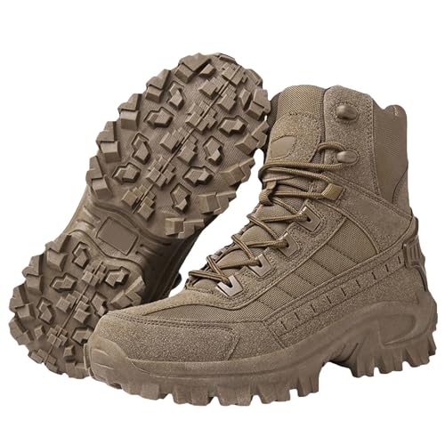 ZHOUPULP Men's Tactical Boots Military Work Combat Boots Outdoor High Top Lightweight Hiking Boots(Khaki Size 9.5/44/8.5)