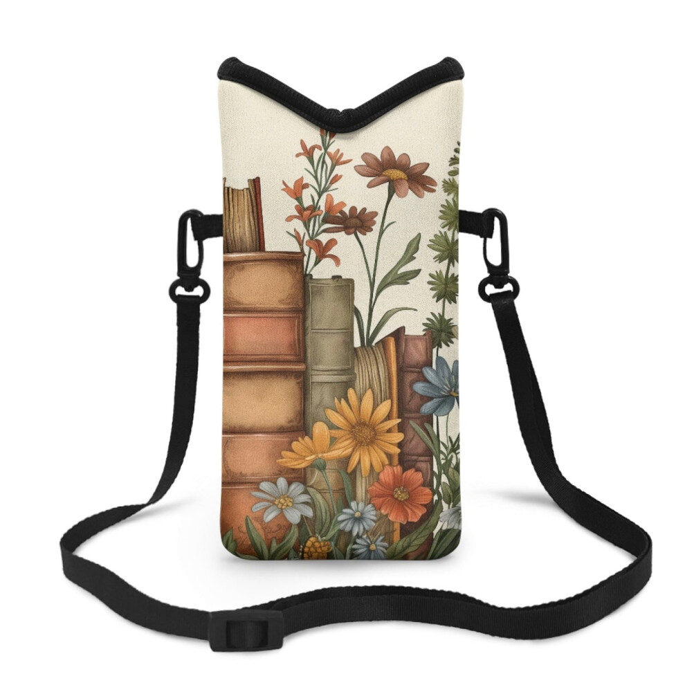 Shockproof Neoprene Crossbody Phone Pouch with Adjustable Strap & Top Opening â 4"x8", Book Flower Design, Compatible with [Model]