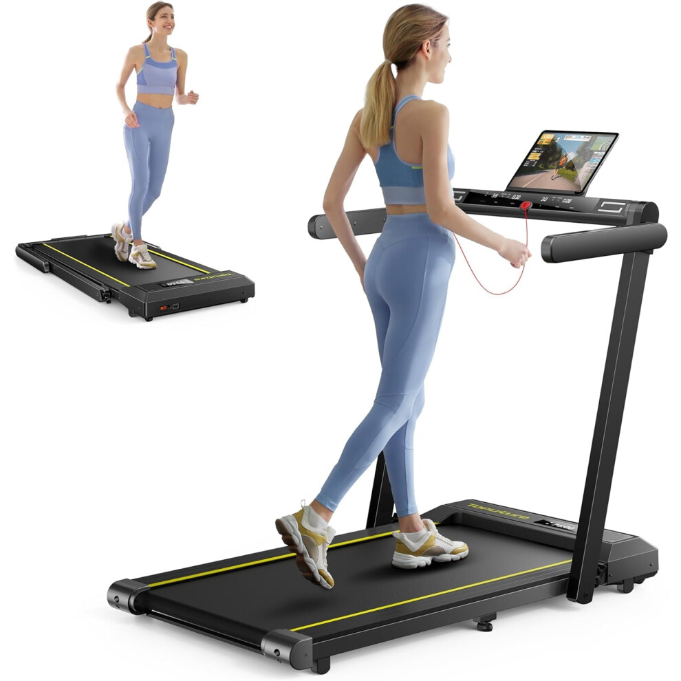 Toputure 6 in 1 Folding Treadmill with Retractable Handrail 1510 Incline Walking Pad Treadmills for Home 112KMH Foldable Treadmill with Table Cup Ho