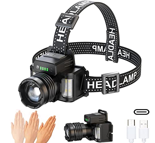 Head Torch | Rechargeable Head Torch for Adults, IPX5 Waterproof, Motion Sensor, Hiking, Hunting, Running