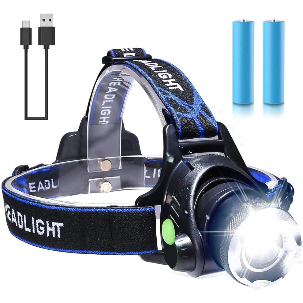 Headlamp, USB Rechargeable LED Torch, Zoomable and Waterproof Head Torch Lamp for Camping, Fishing,