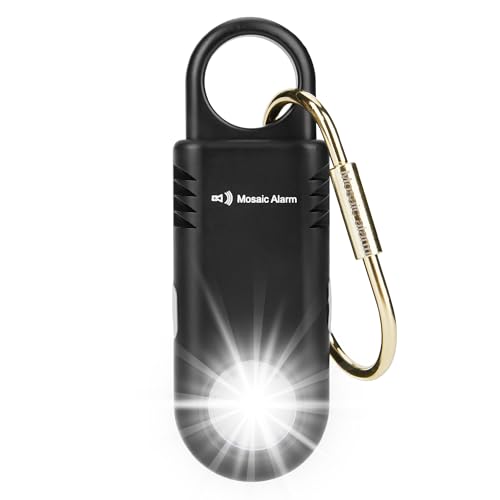 Rechargeable 135dB Personal Safety Alarm Strobe Light Loud Sound Non Slip Grip Keychain SOS Siren for Women, Student. Torchlight Hiking Bear Alarm Deterrent. Emergency Self Defense Alert. Black