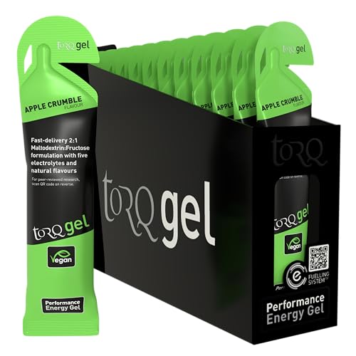 TORQ Running Gels with Electrolytes - 2:1 Maltodextrin: Fructose for Endurance Sports & Optimal Performance | Energy Gels for Running, Cycling & Marathons - 30g Carbs Per Gel | Apple Crumble 15