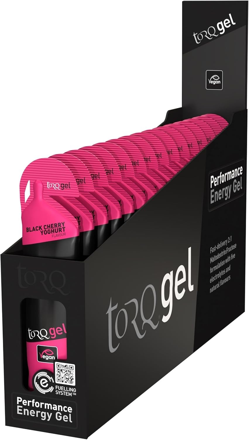 Torq Energy 45g Gels Carbohydrate Electrolytes Black Cherry Yoghurt Pack Of 15