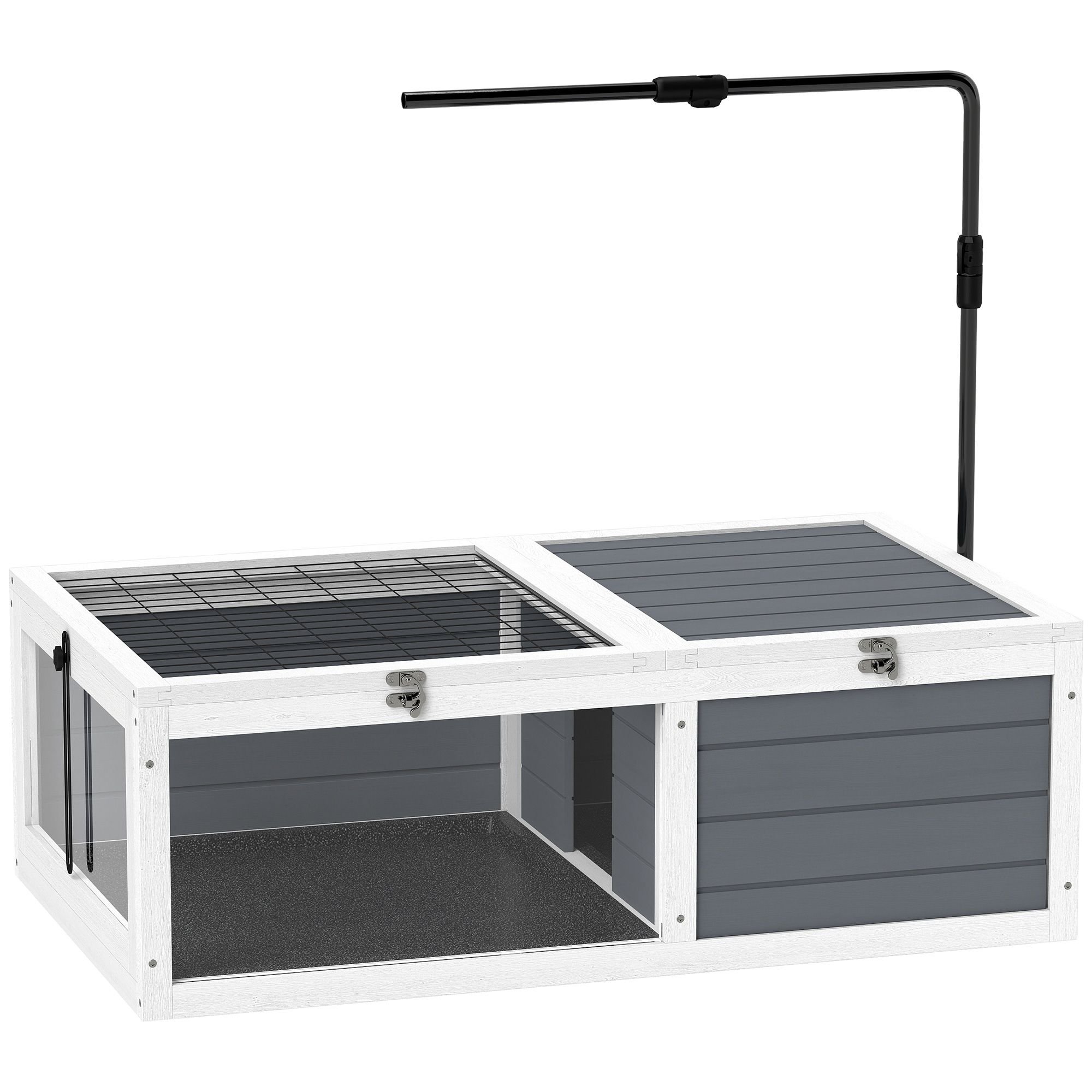 Pawhut Wooden Tortoise House, With Shelter, Run, Shelf, Lamp Holder, Tray, Grey