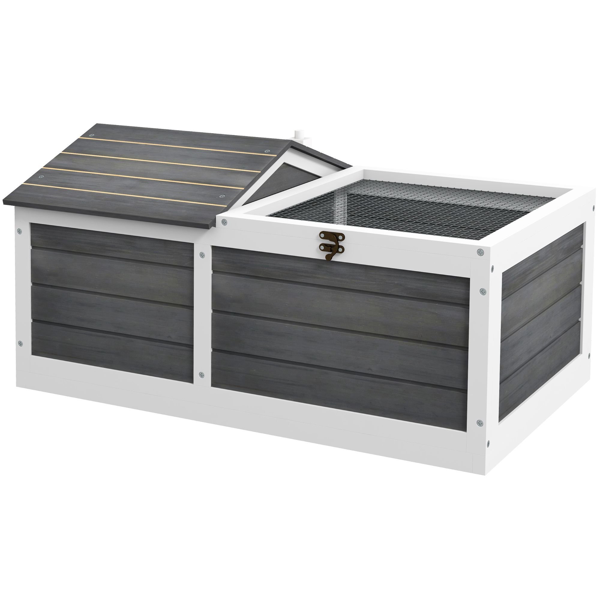 Pawhut Tortoise House With Mesh Roof, Small Pet Reptile Wooden House, Tortoise Enclosure With Pulled-out Side Panel, Grey