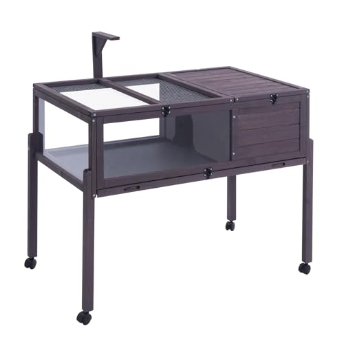 PawHut Wooden Tortoise House with Storage Shelf, Clear Observation Windows