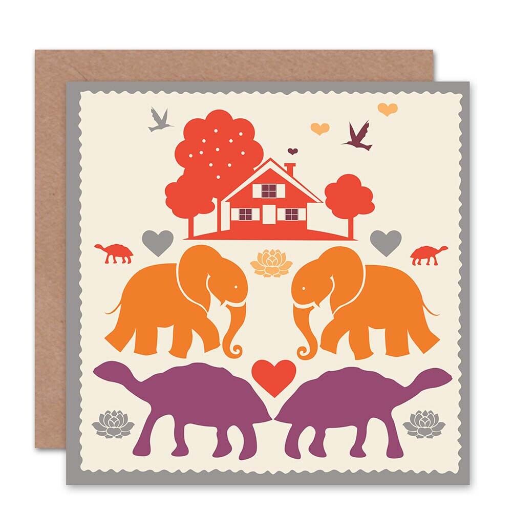 Elephants Tortoise House Blank Greeting Card With Envelope