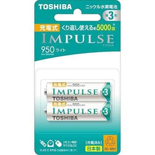 TNH-3LE2P Toshiba Impulse 950Mah Aasize Nimh Rechargeable Battery 2Pack Charger