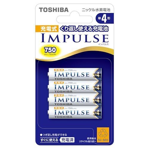 TNH-4A 4P Toshiba Impulse 750Mah Aaasize Nimh Rechargeable Battery 4Pack F S W