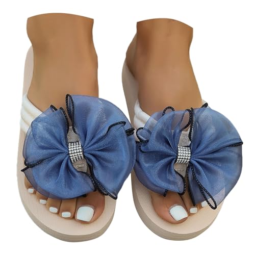 Totes Flip Flops Women, Toe Post Flip Flops Women, Flatform Sandals Non-Slip Sole Comfortable Bathroom Slippers Foot Wear for Summer Beach Pool Flip Flop Blue 3.5
