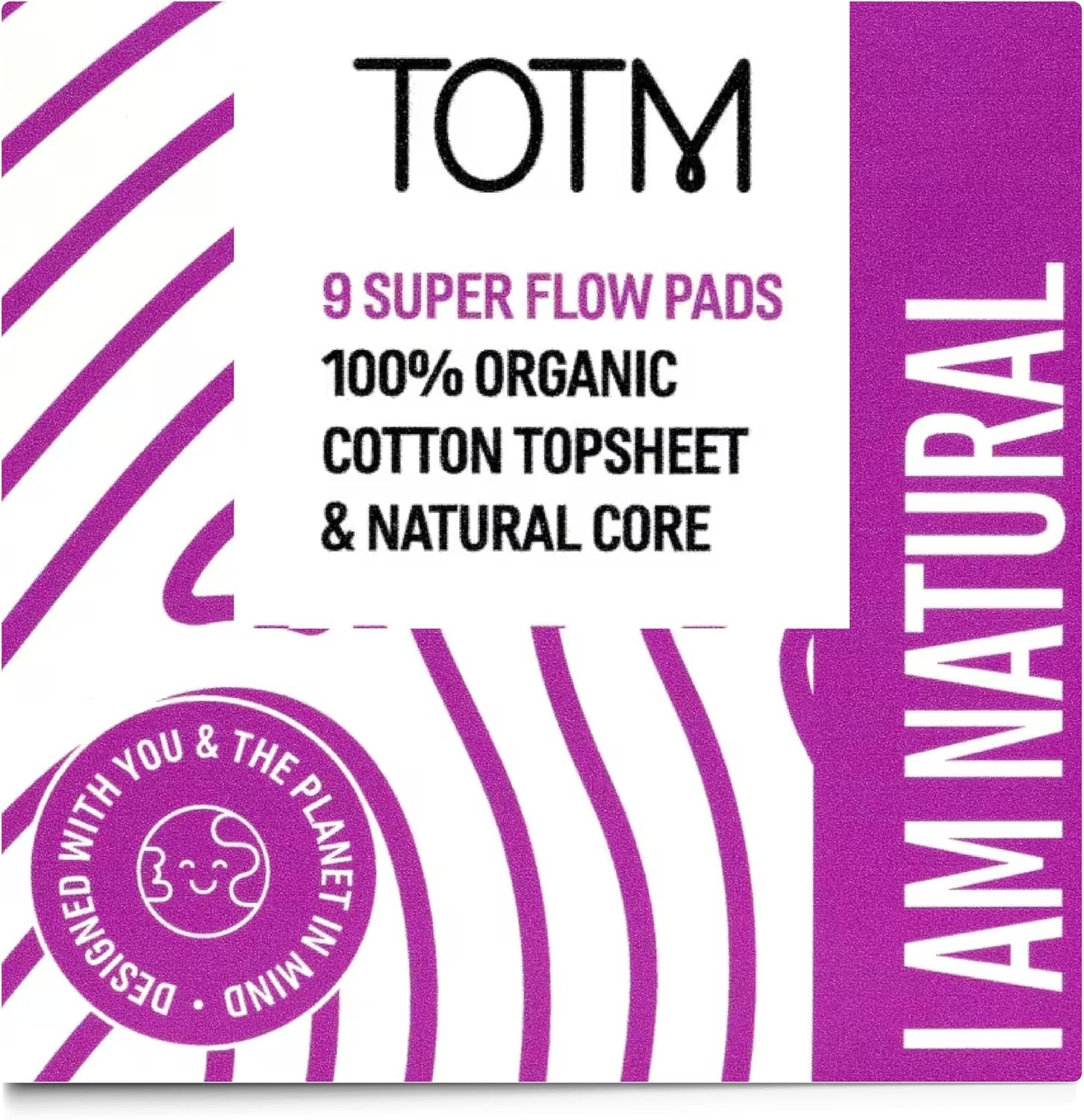 TOTM Natural Pads with Organic Cotton & Renewable Woodpulp | Super - Pack of 9