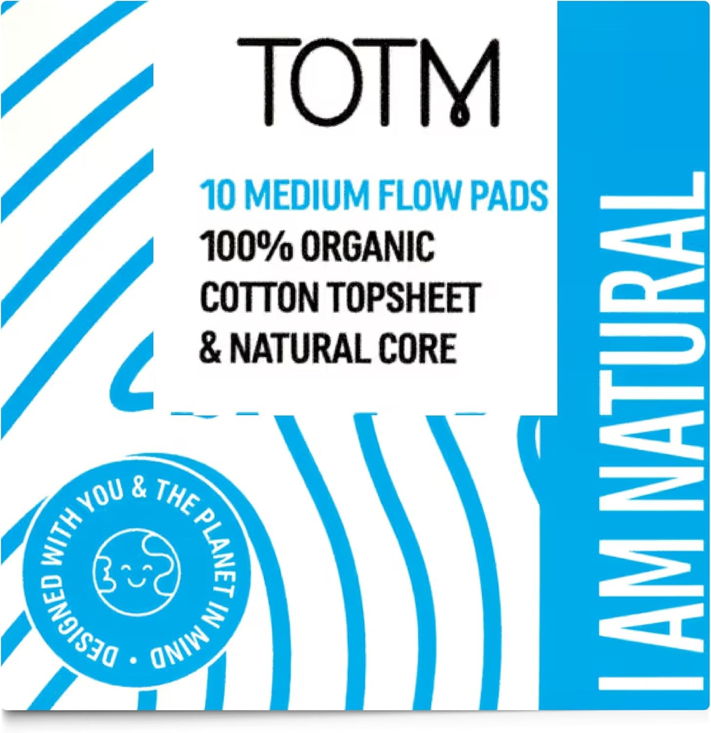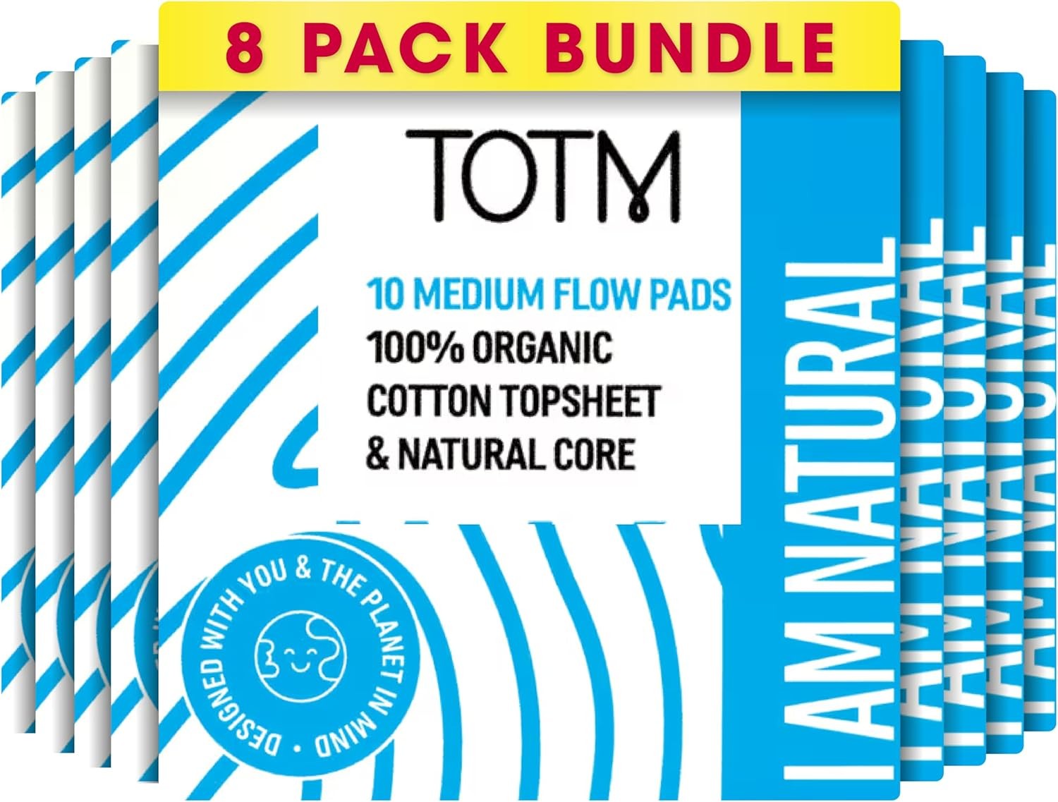 TOTM Natural Pads with Organic Cotton & Renewable Woodpulp | Medium - Pack of 8
