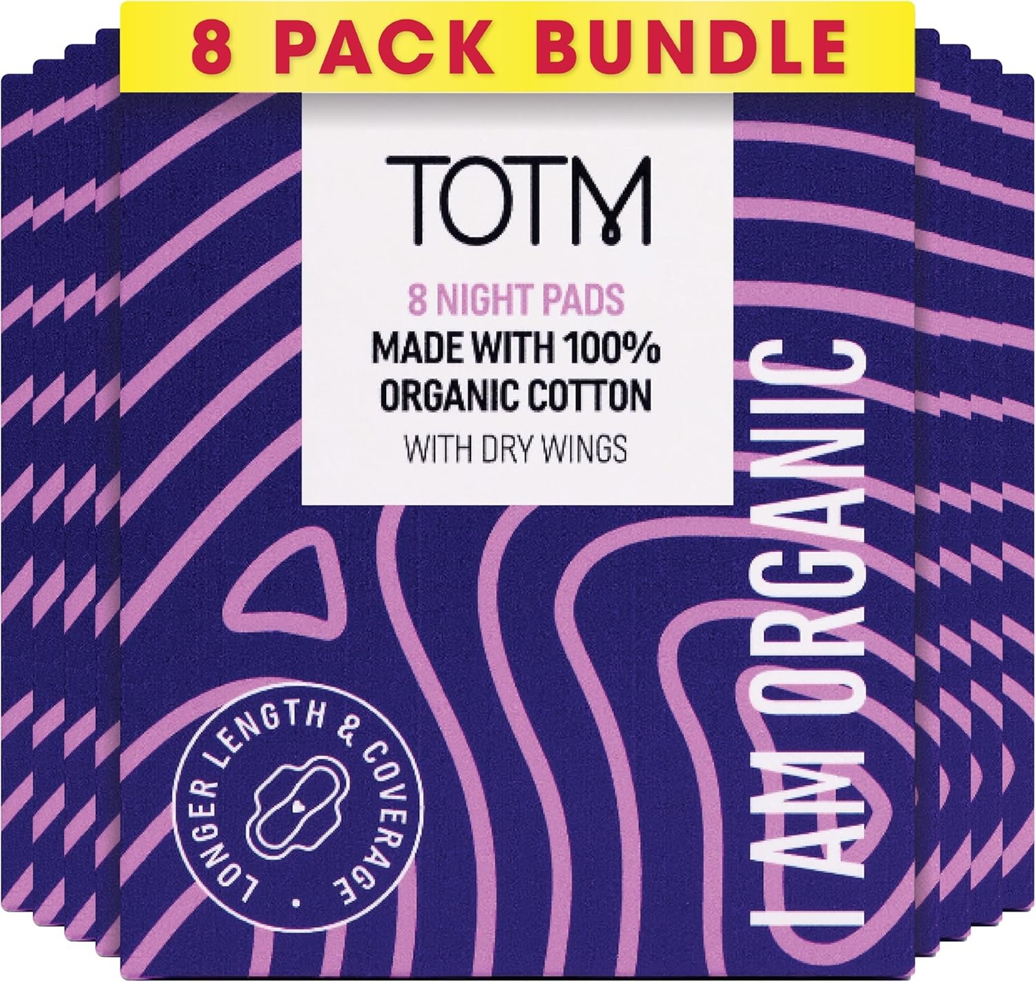 TOTM 100% Organic Cotton Night Pads with Triple-Layer Protection - Case of 8-64
