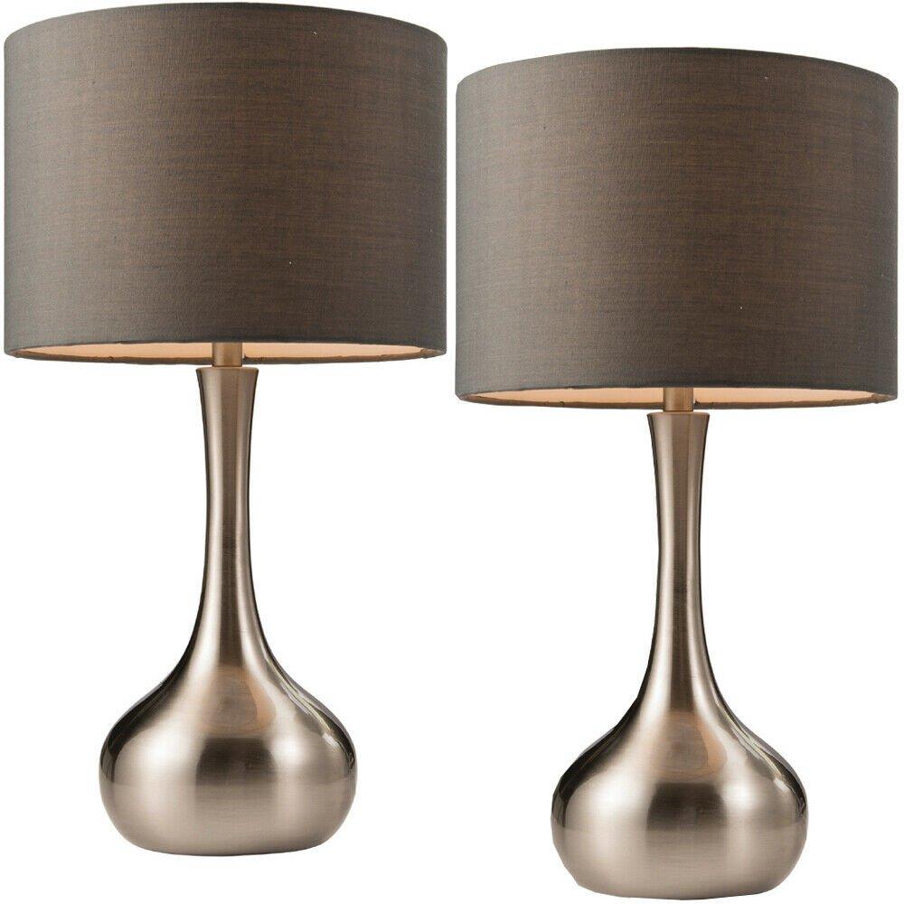 2 PACK - Touch Dimmer Table Lamp Satin Nickel & Grey Shade Metal Bedside Light