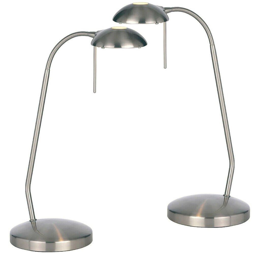2 PACK - Touch Dimmer Table Lamp Light Satin Chrome & Adjustable Neck Reading